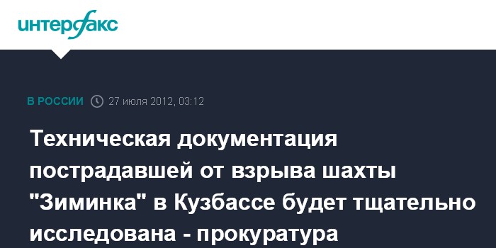Техническая документация пострадавшей от взрыва шахты "Зиминка" в Кузбассе будет тщательно исследована - прокуратура