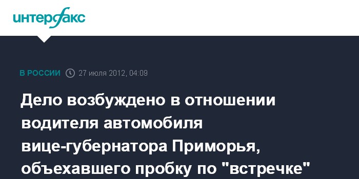 Владивосток. 27 июля. ИНТЕРФАКС-ДАЛЬНИЙ ВОСТОК - УГИБДД Приморья вынесло определение о возбуждении дела об административном правонарушении после сообщений в СМИ о том, что автомобиль губернатора края объехал пробку по встречной полосе.
