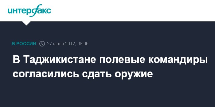 Душанбе. 27 июля. INTERFAX.RU - В Горно-Бадахшанской автономной области (ГБАО) на востоке Таджикистана бывшие полевые командиры оппозиции согласились выполнить первый из двух пунктов ультиматума властей - добровольно сложить оружие, сообщил в пятницу "Интерфаксу" источник, близкий к проведению операции в ГБАО.