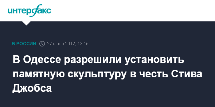 Киев. 27 июля. INTERFAX.RU - Мэрия Одессы поддержала инициативу студентов и коллектива одного из вузов города установить памятную скульптурную композицию в честь основателя и председателя совета директоров компании Apple Стива Джобса.