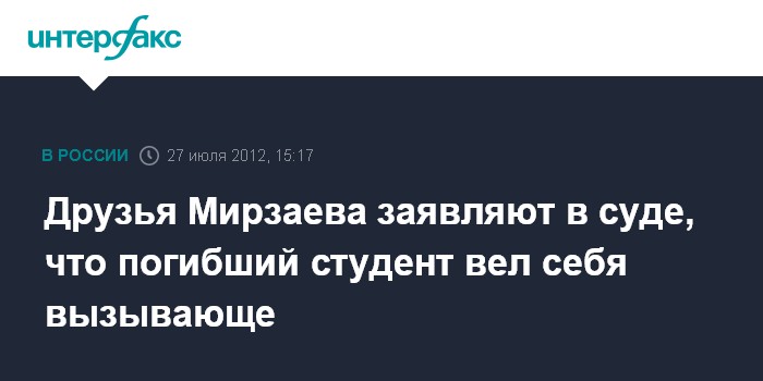 Друзья Мирзаева заявляют в суде, что погибший студент вел себя вызывающе