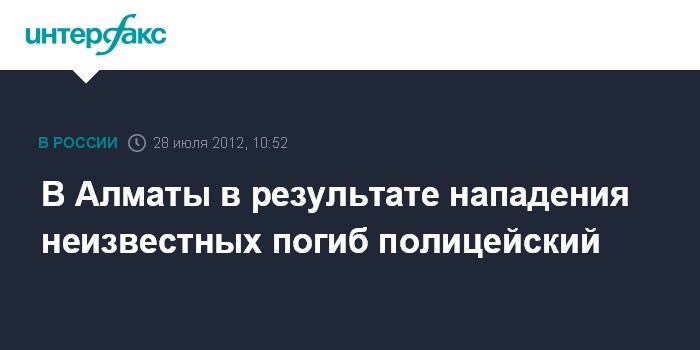 Астана. 28 июля. INTERFAX.RU - В Алматы в субботу утром на улице Бекмаханова неизвестные совершили вооруженное нападение на несших службу сотрудников полиции. В результате один полицейский погиб на месте и еще один с телесными повреждениями доставлен в больницу, сообщила пресс-служба генеральной прокуратуры Казахстана. По предварительным данным, преступники завладели табельным оружием потерпевших.