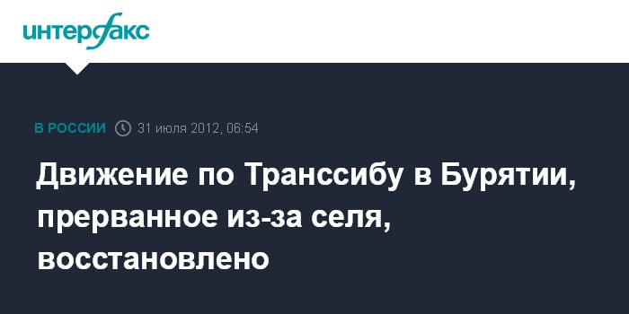 Ранее сообщалось, что движение по Транссибу на участке Мостовой-Дивизионная в 16 км к западу от Улан-Удэ было приостановлено из-за селя, который вызвал сход электровоза грузового поезда двумя колесными парами.