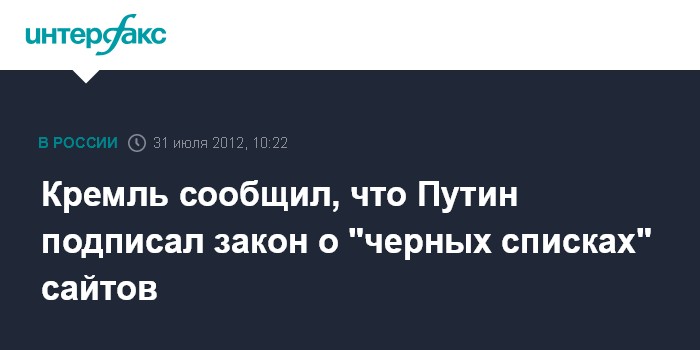 Кремль сообщил, что Путин подписал закон о "черных списках" сайтов