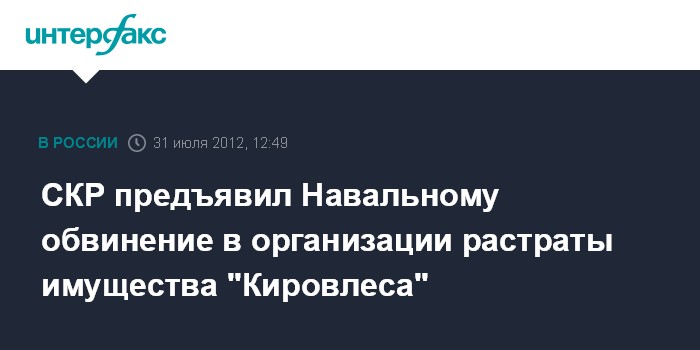 СКР предъявил Навальному обвинение в организации растраты имущества "Кировлеса"