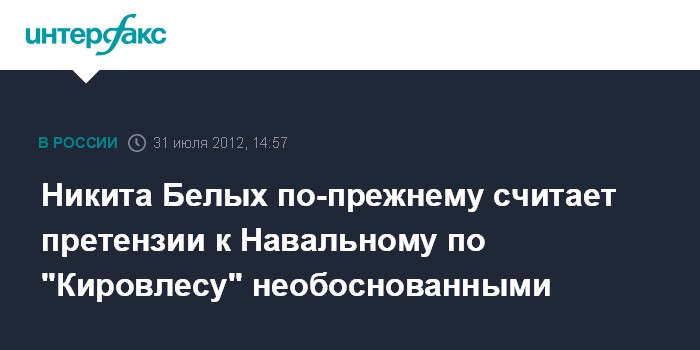 Ранее Белых уже комментировал информацию о возбуждении уголовного дела в отношении Навального о причинении особо крупного ущерба государственному предприятию "Кировлес". Тогда глава Кировской области подчеркнул, что он согласен далеко не со всем, что делает Навальный. "Но претензии к нему по части "Кировлеса" я точно считаю необоснованными", - написал Н.Белых в своем блоге в мае прошлого года.
