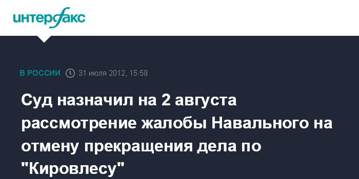 Суд назначил на 2 августа рассмотрение жалобы Навального на отмену прекращения дела по "Кировлесу"