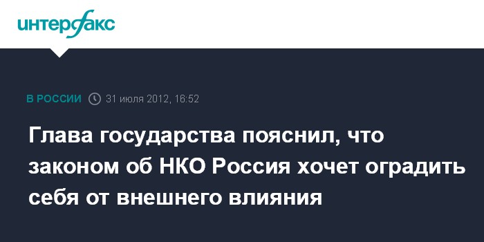 Глава государства пояснил, что законом об НКО Россия хочет оградить себя от внешнего влияния