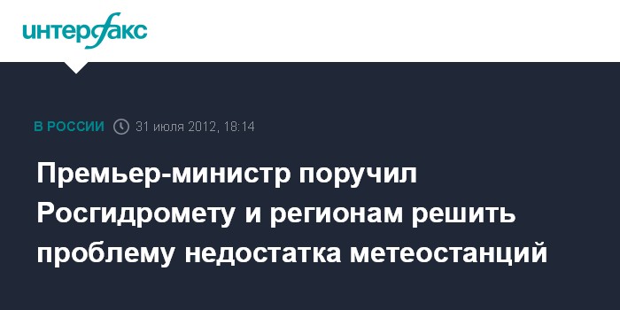 Премьер-министр поручил Росгидромету и регионам решить проблему недостатка метеостанций
