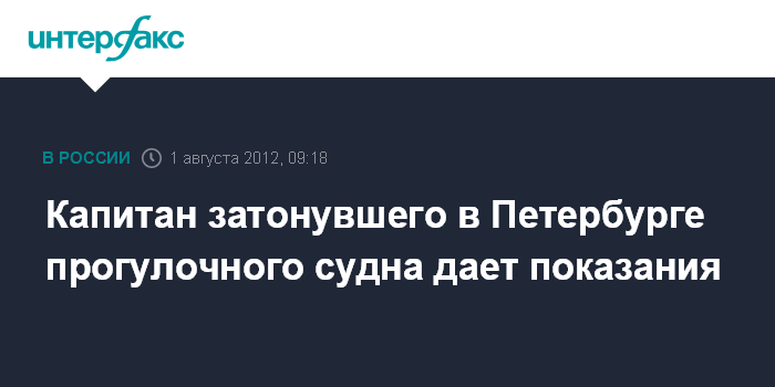 Капитан затонувшего в Петербурге прогулочного судна дает показания