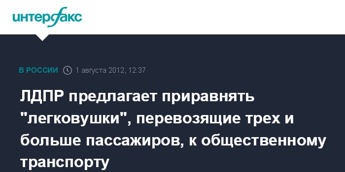 ЛДПР предлагает приравнять "легковушки", перевозящие трех и больше пассажиров, к общественному транспорту