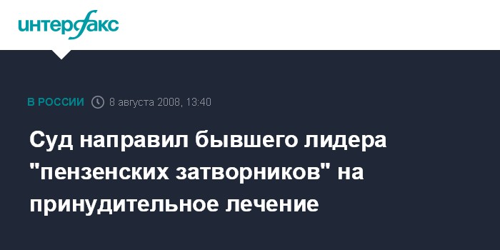 Москва. 8 августа. INTERFAX.RU - Бековский районный суд Пензенской области в пятницу вынес постановление о применении принудительных мер медицинского характера в отношении бывшего лидера "пензенских затворников" Петра Кузнецова.