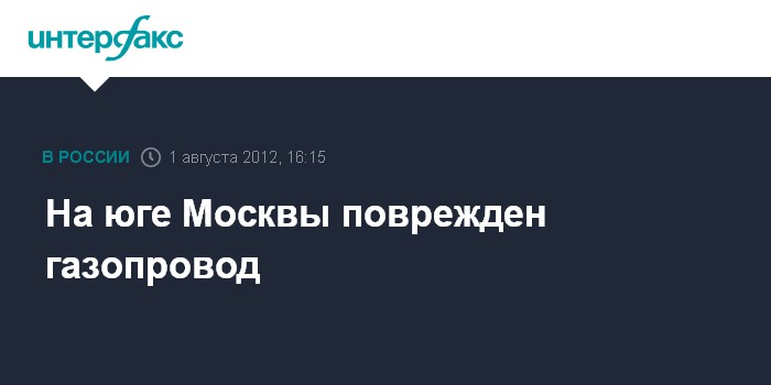 Москва. 1 августа. INTERFAX.RU - На юге Москвы зафиксировано повреждение газопровода, сообщила "Интерфаксу" пресс-секретарь ГУП "Мосгаз" Дарья Распопова.