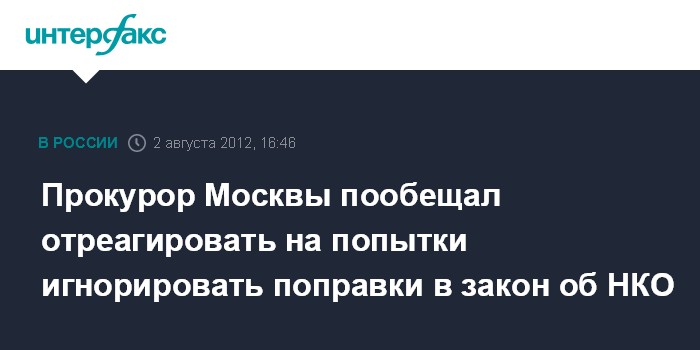 Прокурор Москвы пообещал отреагировать на попытки игнорировать поправки в закон об НКО