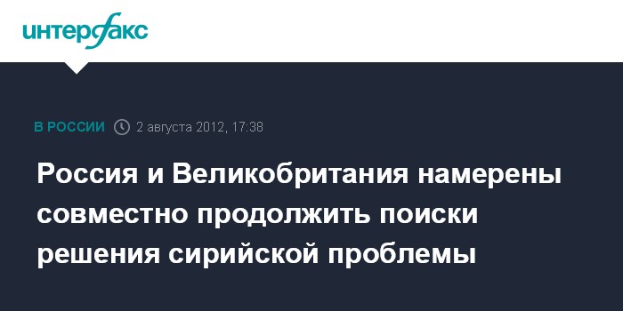 Россия и Великобритания намерены совместно продолжить поиски решения сирийской проблемы