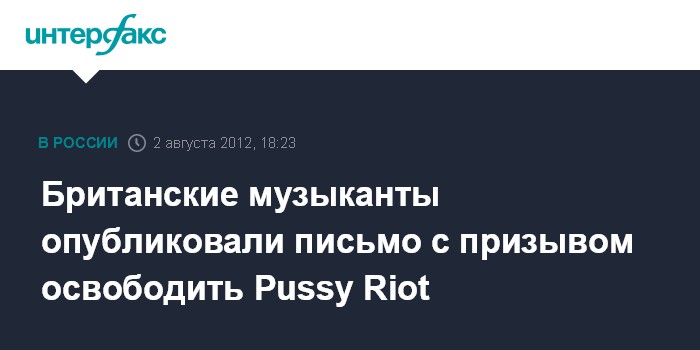 Лондон. 2 августа. INTERFAX.RU - Музыканты из британских коллективов The Who, Pulp и Pet Shop Boys в четверг опубликовали письмо, в котором призвали российские власти освободить из тюрьмы участниц панк-группы Pussy Riot, сообщила британская газета The Guardian.