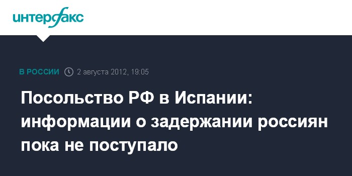 Как заявили "Интерфаксу" в российской дипмиссии в четверг, никаких данных из испанского МИД к нам пока не поступало.