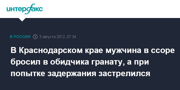 В Краснодарском крае мужчина в ссоре бросил в обидчика гранату, а при попытке задержания застрелился
