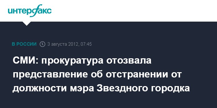СМИ: прокуратура отозвала представление об отстранении от должности мэра Звездного городка