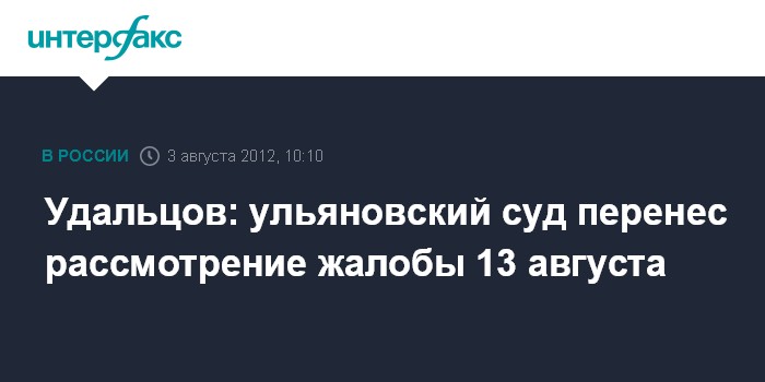 Москва. 3 августа. INTERFAX.RU - Ленинский суд Ульяновска перенес на 13 августа рассмотрение жалобы оппозиционера Сергея Удальцова на приговор по делу об избиении местной студентки, сообщил Удальцов в пятницу агентсву "Интерфакс".