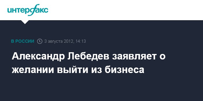 Александр Лебедев заявляет о желании выйти из бизнеса