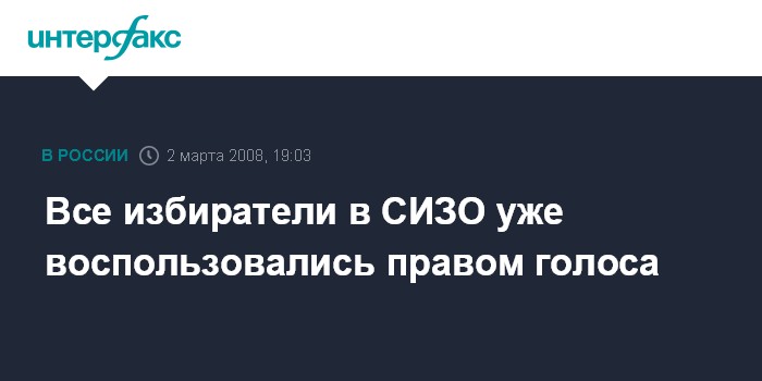 Москва. 2 марта. INTERFAX.RU - Все заключенные, находящиеся под стражей в следственных изоляторах, уже проголосовали на выборах президента РФ, заявил член ЦИК РФ Геннадий Райков.