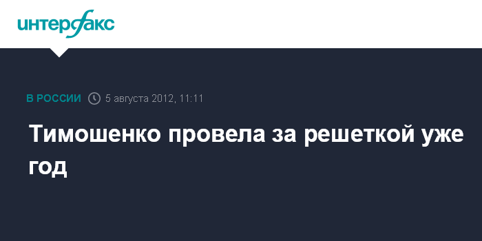 Киев. 5 августа. INTERFAX.RU - В воскресенье, 5 августа, исполняется ровно год, как экс-премьер-министр Украины Юлия Тимошенко была лишена свободы. В 16.30 в воскресенье члены Совета Объединенной оппозиции "Батькивщина" - председатели партий, входящих в состав объединения, посетят Харьковскую больницу "Укрзализници", чтобы выразить поддержку лидеру оппозиции Юлии Тимошенко в день годовщины ее заключения.