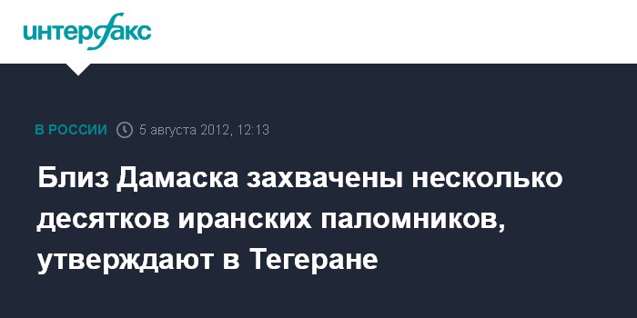 Тегеран. 5 августа. INTERFAX.RU - Иранский англоязычный телеканал "Пресс-ТВ" проинформировал в воскресенье, что 48 иранских граждан, о задержании которых через телеканал "Аль-Арабийя" сообщили сирийские оппозиционеры, на самом деле - паломники.