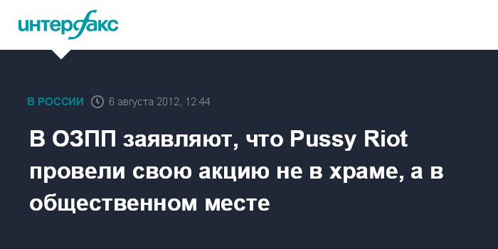 В ОЗПП заявляют, что Pussy Riot провели свою акцию не в храме, а в общественном месте