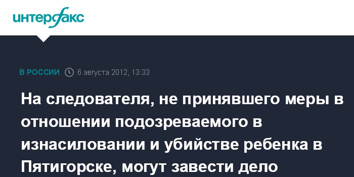 На следователя, не принявшего меры в отношении подозреваемого в изнасиловании и убийстве ребенка в Пятигорске, могут завести дело