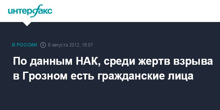 Москва. 6 августа. INTERFAX.RU - Национальный антитеррористический комитет сообщает, что среди жертв и пострадавших в результате взрыва в Грозном как военнослужащие, так и местные жители.