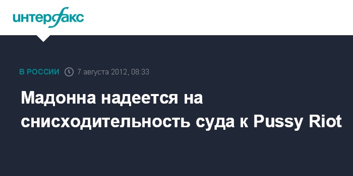 Лондон. 7 августа. INTERFAX.RU - Американская поп-звезда Мадонна выразила надежду, что трое участниц панк-группы Pussy Riot, дело о хулиганстве против которых слушается в Хамовническом суде Москвы, вскоре будут освобождены.