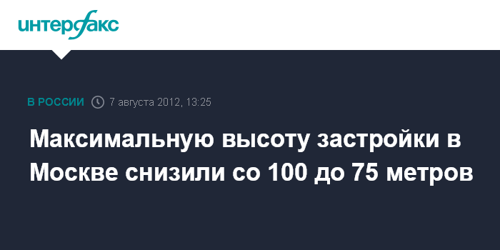 Максимальную высоту застройки в Москве снизили со 100 до 75 метров