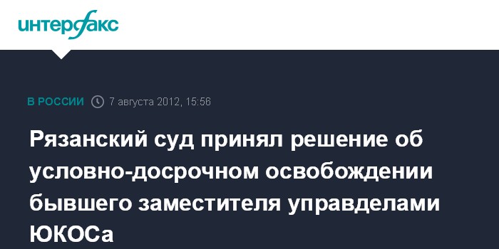Рязанский суд принял решение об условно-досрочном освобождении бывшего заместителя управделами ЮКОСа