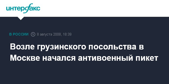 Москва. 8 августа. INTERFAX.RU - Возле посольства Грузии в центре Москвы на пересечении Малого Ржевского и Хлебного переулков начался пикет российских молодежных организаций против войны на Кавказе.