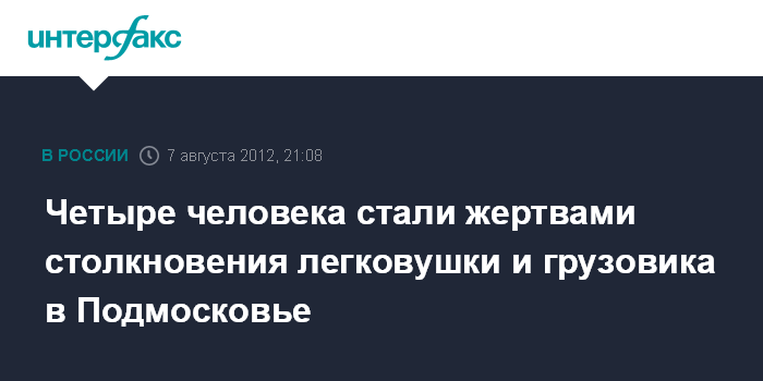 Москва. 7 августа. INTERFAX.RU - Четыре человека погибли в результате столкновения грузовика "Volvo" и легкового автомобиля ВАЗ-2105 в Подольском районе Подмосковья, сообщили "Интерфаксу" в пресс-службе ГУ МЧС по Московской области.