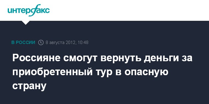 Россияне смогут вернуть деньги за приобретенный тур в опасную страну