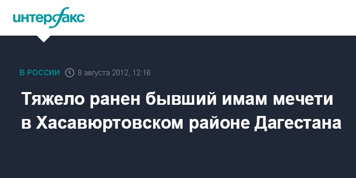 Москва.8 августа. INTERFAX.RU - Покушение на бывшего имама мечети населенного пункта Эндирейаул Хасавюртовского района Дагестана совершено минувшей ночью, сообщили "Интерфаксу" в информационном центре Национального антитеррористического комитета.