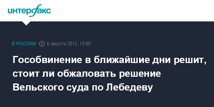 Гособвинение в ближайшие дни решит, стоит ли обжаловать решение Вельского суда по Лебедеву