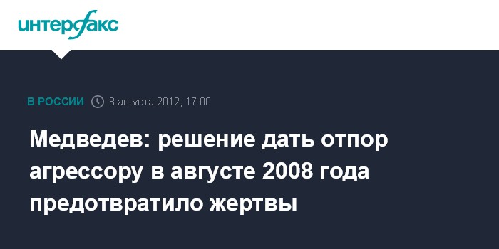 Медведев: решение дать отпор агрессору в августе 2008 года предотвратило жертвы