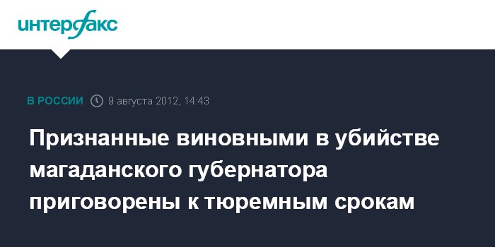 Признанные виновными в убийстве магаданского губернатора приговорены к тюремным срокам