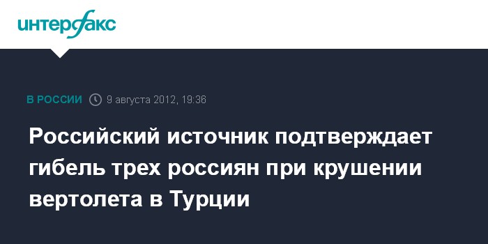 Российский источник подтверждает гибель трех россиян при крушении вертолета в Турции