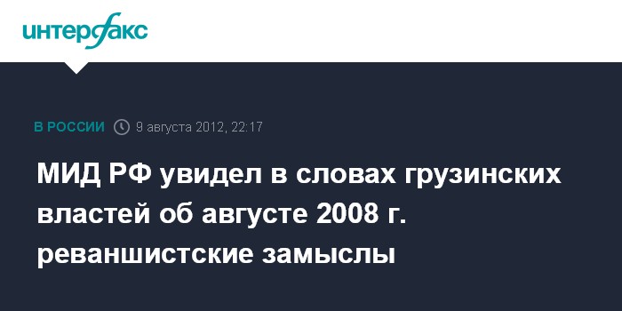 Москва. 9 августа. INTERFAX.RU - Грузия не отказалась от реваншистских планов в отношении Абхазии и Южной Осетии, это показывает реакция Тбилиси на высказывания президента РФ Владимира Путина о событиях августа 2008 года, считают в МИД РФ.