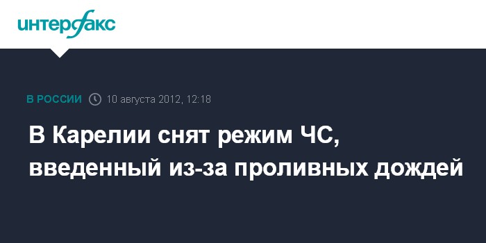 Петрозаводск. 10 августа. INTERFAX.RU - Комиссия правительства Карелии по предупреждению и ликвидации чрезвычайных ситуаций сняла режим ЧС, введенный в республике из-за проливных дождей, сообщает пресс-служба региональной администрации.