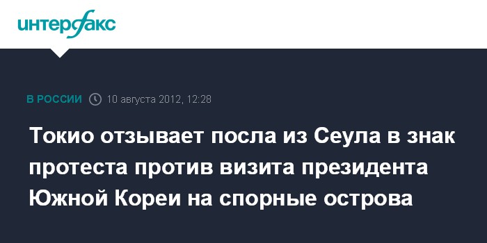 Токио отзывает посла из Сеула в знак протеста против визита президента Южной Кореи на спорные острова