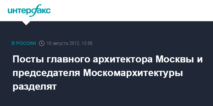 Посты главного архитектора Москвы и председателя Москомархитектуры разделят