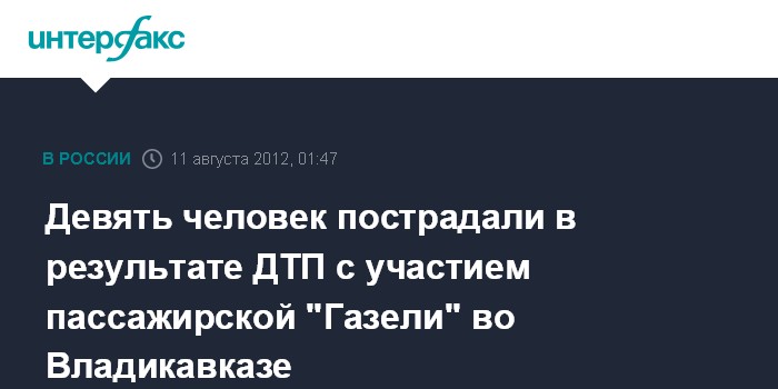 Владикавказ. 11 августа. ИНТЕРФАКС-ЮГ - Во Владикавказе в результате столкновения микроавтобуса "Газель" с "Мерседесом" пострадали девять человек, сообщает пресс-служба МЧС по Северной Осетии.