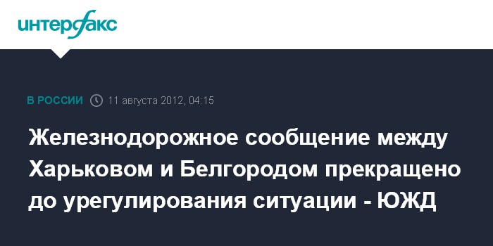 Железнодорожное сообщение между Харьковом и Белгородом прекращено до урегулирования ситуации - ЮЖД