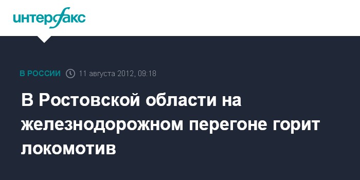 Ростов-на-Дону. 11 августа. ИНТЕРФАКС-ЮГ - Возгорание локомотива грузового состава произошло на перегоне между Батайском и Старой Минской в районе поселка Высочено (Ростовская область), сообщили агентству "Интерфакс-Юг" в экстренных службах региона.