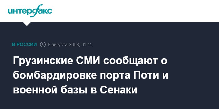 Грузинские СМИ сообщают о бомбардировке порта Поти и военной базы в Сенаки